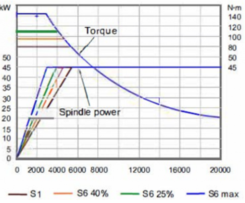 Максимальная производительность станка достигается при работе на максимальных оборотах шпинделя. Если обороты шпинделя значительно снижаются, производительность станка уменьшается пропорционально. Производители шпинделей предоставляют графики зависимости полезной мощности от частоты вращения, которые могут различаться.