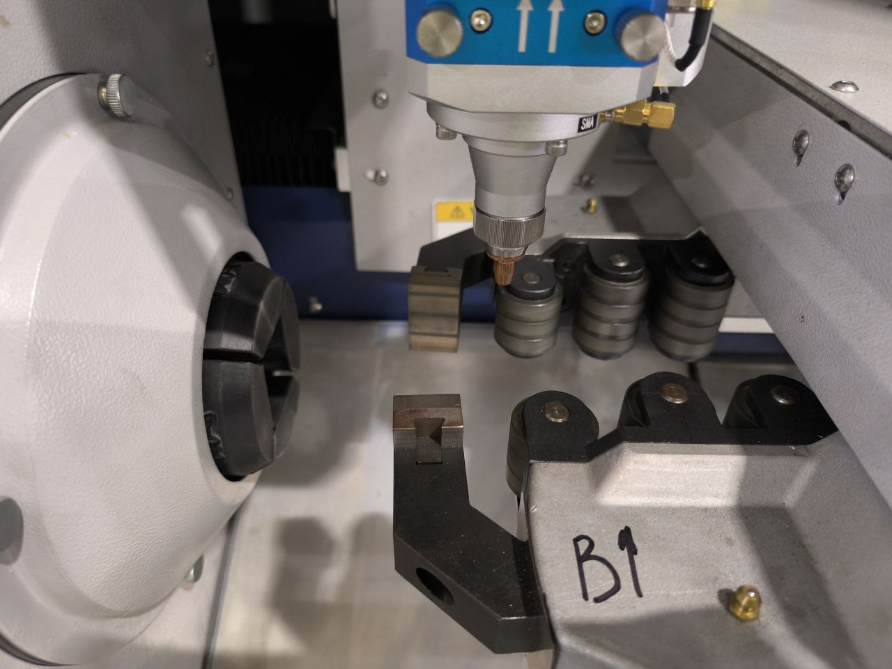 Такая модель отличается от первой уникальной технологией сервозахвата. Сервозахват дополнительно выравнивает естественные изгибы трубы, что также положительно сказывается на точности, благодаря наличию роликов и длинной области удержания. А за счет точной настройки усилия сжатия, сервозахват предупреждает появление следов замятий от схватов, с чем часто приходится сталкиваться в универсальных труборезах. На моделях LPC A5/B5 резка осуществляется с полным ходом с поддержкой трубы по центру для исключения деформаций, т.е. обработать трубу лазером можно на всю длину вытягивания - до 1300 мм.