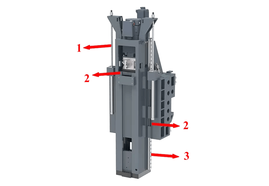 - Сверхмощные линейные направляющие 2-55 с обеих сторон ползунка имеют большой пролет и устойчивы к резанию.