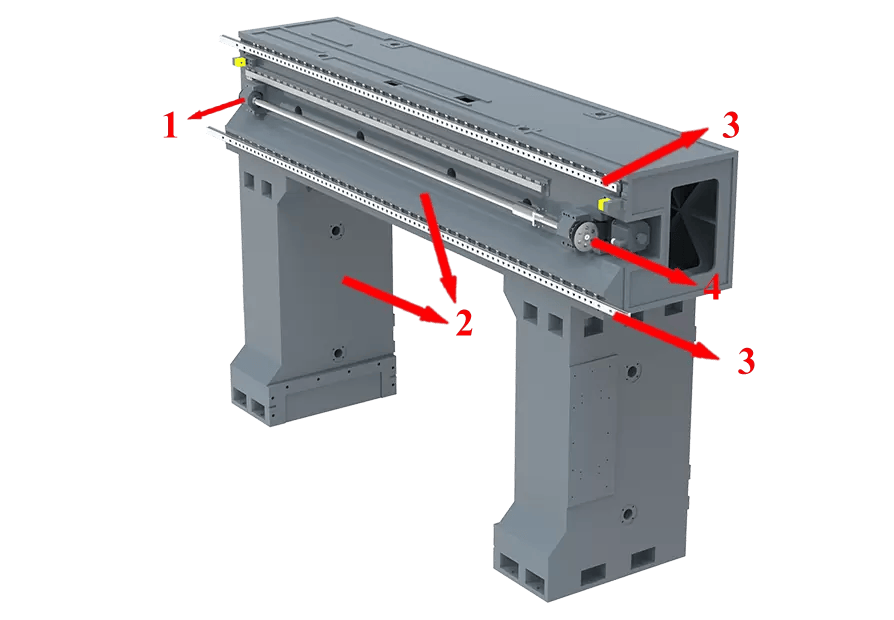 - Оснащена сверхмощными линейными направляющими 2-55 для большей жесткости и устойчивости за счет лестничной компоновки и большого пролета.