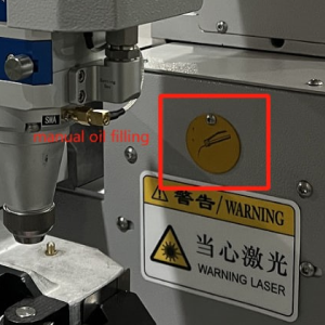 Отверстие для заправки масла в LPC80-B4 расположено в основании лазерной головки, как показано на фотографии.