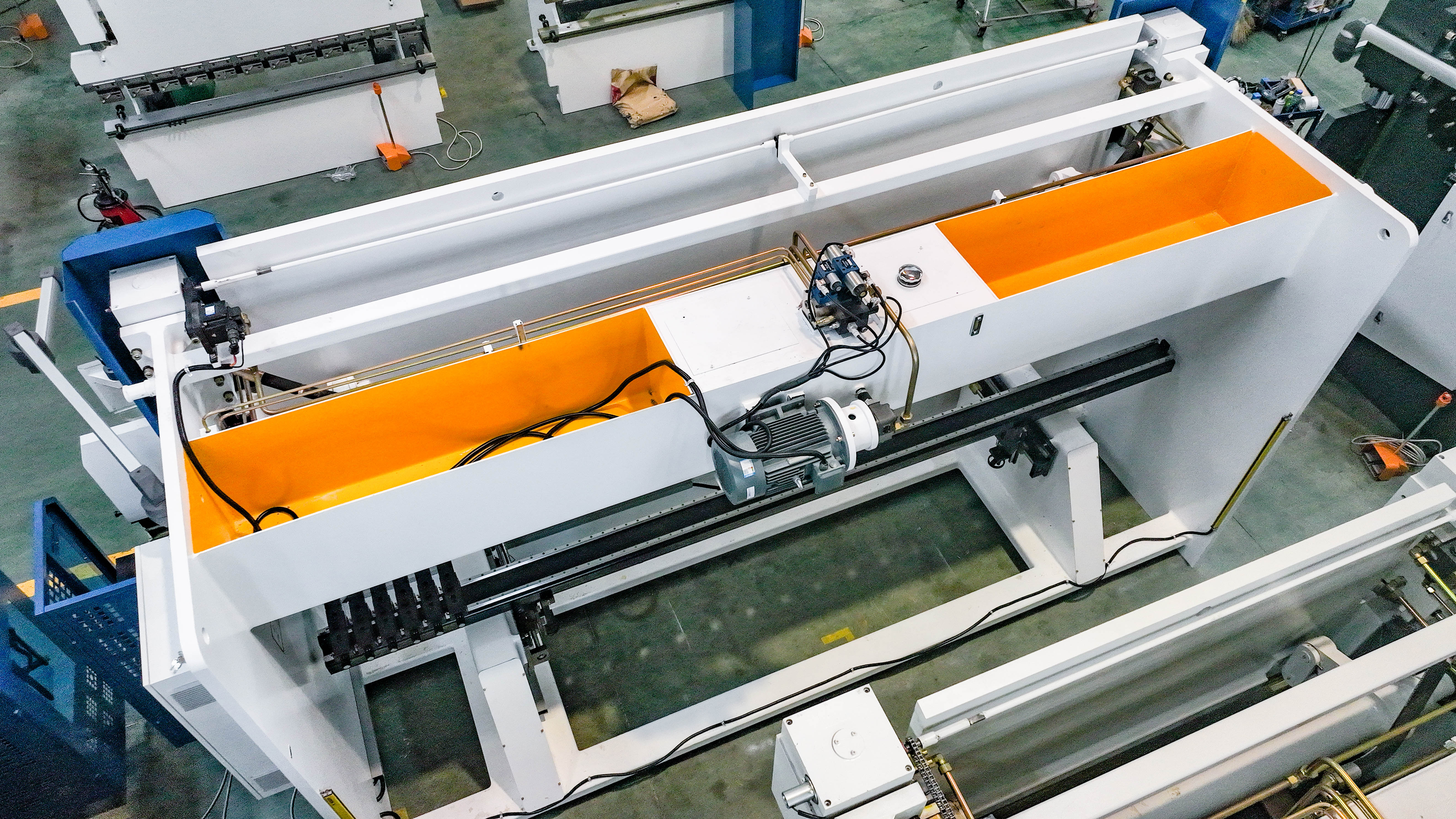 Станина листогибочного пресса проходит процесс термической обработки для устранения внутренних напряжений, что обеспечивает стабильность станка при длительной эксплуатации. Дополнительно станина листогибочного пресса подвергается дробеструйной обработке для удаления ржавчины и окалины, улучшения адгезии при последующей покраске станины.