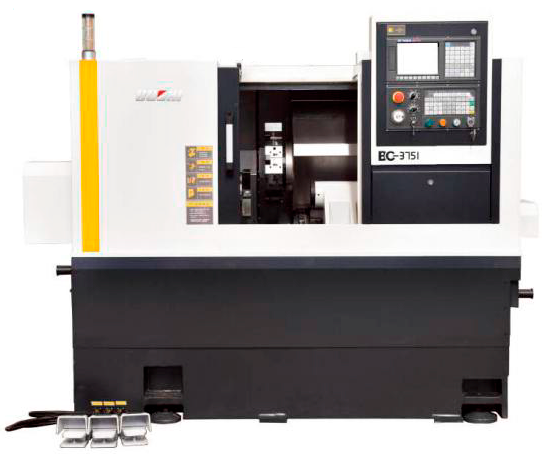 Токарный станок с ЧПУ Bochi модель BC3751 имеет псевдонаклонную станину: суппорт под углом 30°, а задняя бабка находится на прямой станине. Плюс такой конструкции в долгом сохранении точности позиционирования задней бабки относительно трёхкулачкового патрона. Станок имеет компактную структуру, большой диаметр обработки и малую площадь основания; большой инструментальный диск и минимальные интерференции инструмента. Станок может обрабатывать внутренние и внешние цилиндрические, конические и дуговые поверхности; различные резьбы, растачивать отверстия.