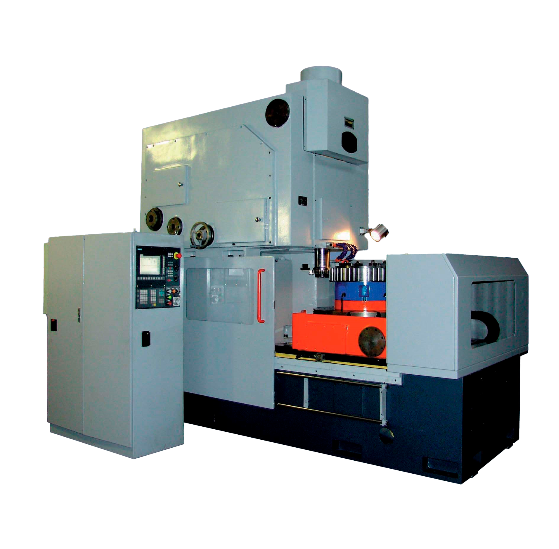 - YK5180B представляет собой четырех-осевой станок с ЧПУ: линейное перемещение рабочего стола (ось Z), вращение рабочего стола (ось X), вращение долбяка (ось S) и возвратно-поступательное движение долбяка (ось Y).