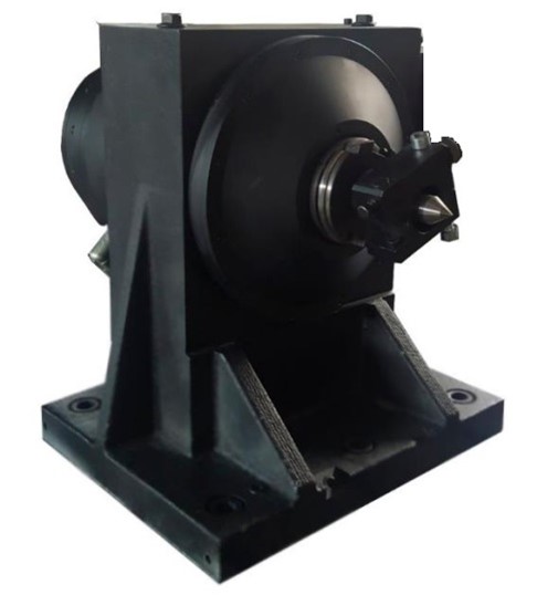 Бабка изделия представляет собой монолитную конструкцию с внешними разъемами для подключения. Внутри литого корпуса на прецизионном радиально-упорном подшипнике установлен шпиндель с внутренним инструментальным конусом SK50. Вращение шпинделя осуществляется от встроенного высокомоментного синхронного мотора с датчиком углового положения. Мотор и датчик углового положения установлены непосредственно на самом шпинделе, без дополнительных механических передач, что обеспечивает наивысшую точность задания углового положения, надежность и долговечность.